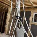 一階部分は、後に配線入れ替えができるように、いつものようにステップル留めはせず、全てフックひっかけ🪝